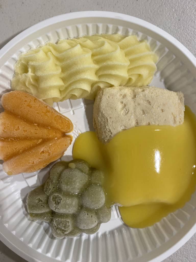 A succulent fish fillet served with a tangy citrus sauce and vegetables.